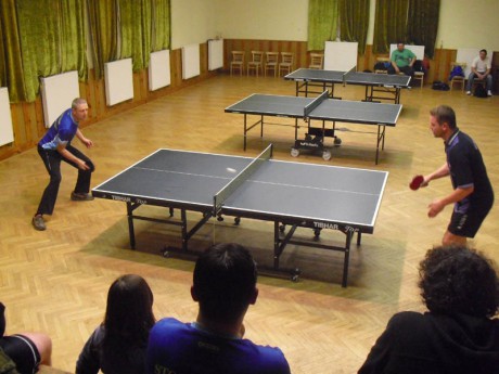 Martin nakonec uhrál 3 body a stejně se vedlo i jeho bráchovi Pavlovi. Na fotce hraje Pavel s Krejčířem poslední zápas v celém utkání, v němž otočil nepříznivý vývoj pátého setu a vyrovnal na konečných 9:9.