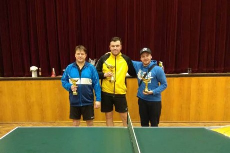 Na Štěpána v Šošůvce už byla konkurence o poznání silnější a tři nejlepší byli hráči krajských celků - zleva poražený finalista S.Sehnal (Rájec), vítězný L.Bezděk (Šošůvka) a třetí skončil náš Petr Krása ml.