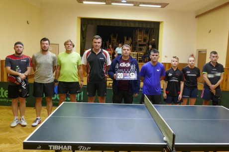 V neděli áčko přivítalo SKST Stavoimpex Hodoním C. Sestavy zleva Peťa, Kuba, Pavel, jenž nahradil Radima, Bezďa, rozhodčí Zdeněk, hosté Libor Melichar, Jaroslav Grabovský ml., Klára Ševčíková a Roman Jakubčík.