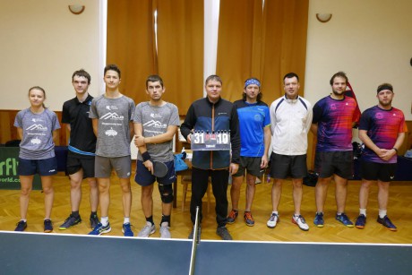V neděli v rámci 8. kola divize hrálo áčko doma s Hodonínem C. Sestavy zleva hosté Klára Ševčíková, Petr Svoboda, Eduard Orel a Roman Jakubčík, dále rozhodčí Zdeněk a naši Radim, Jakub, Petr Koudelka (po včerejšku náš druhý debutant v divizi) a Petr Krása