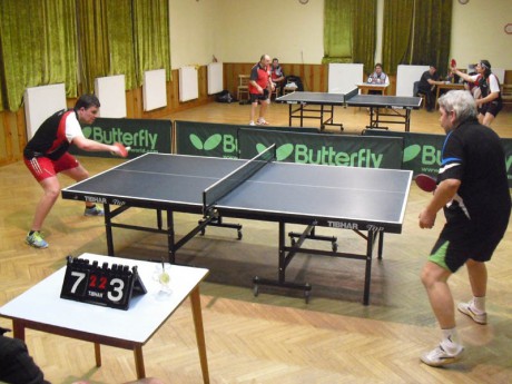 Tady máme nejspíš rozhodující duel utkání: Bezdík proti M. Procházkovi. Náš geroj se k výhře nakonec přece jen protrápil - 3:2(-8,8,-7,6,12). Díky tomu to místo 7:7 bylo po 3. sérii 8:6 pro naše.
